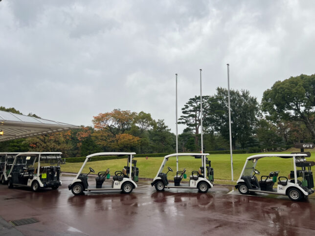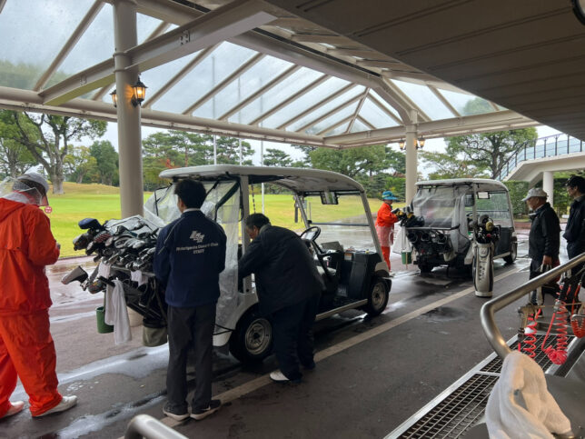 マスター室に戻ると、前の組の人達がキャディバックをカートから降ろしています。うちの組もみんなやめるのかな?と様子を見てるとやめる気配なし・・これは自分だけやめる勇気はありません。