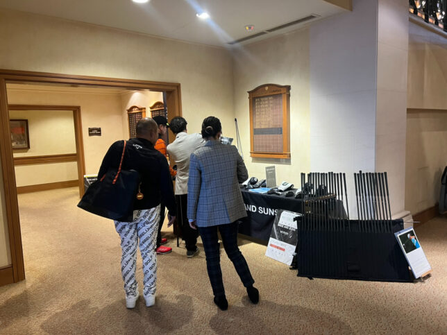 ロッカー前では、オーダーメイドシャフトimide and suns(イミデアンドサンズ)の試打会をやっていました。担当が以前からの知り合いの方で、久しぶり!ということで打ってみることにしました。
