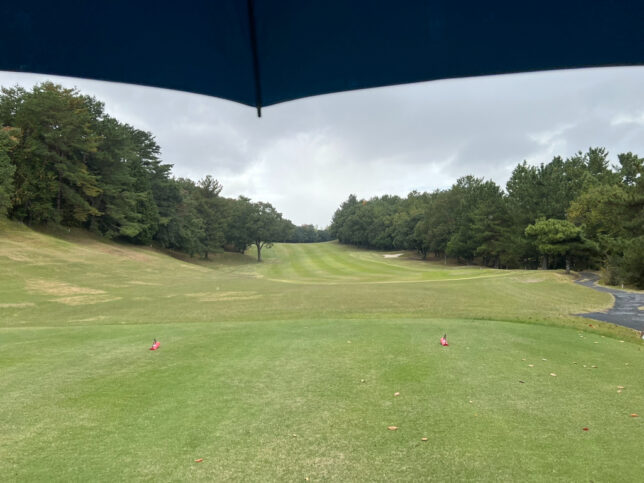 前半のアウトコース。名四はとにかくコース管理が素晴らしい。特にフェアウェイはフカフカでノータッチでも全然平気。ただこの日はグリーン上で苦戦・・悲しいぐらいに全然入らない。前半41点。